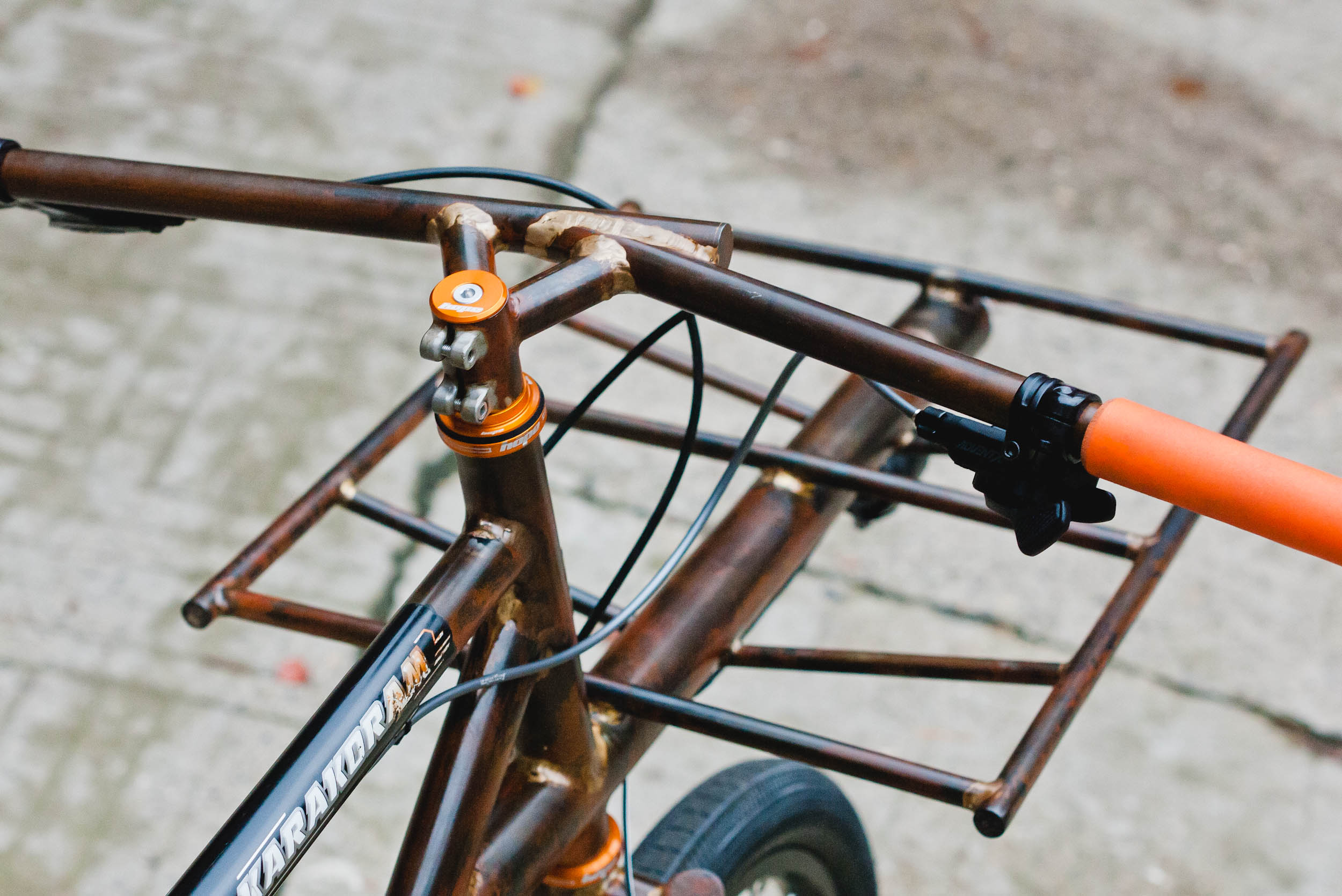 Transformation d’un VTT 26″ acier en mini cargo